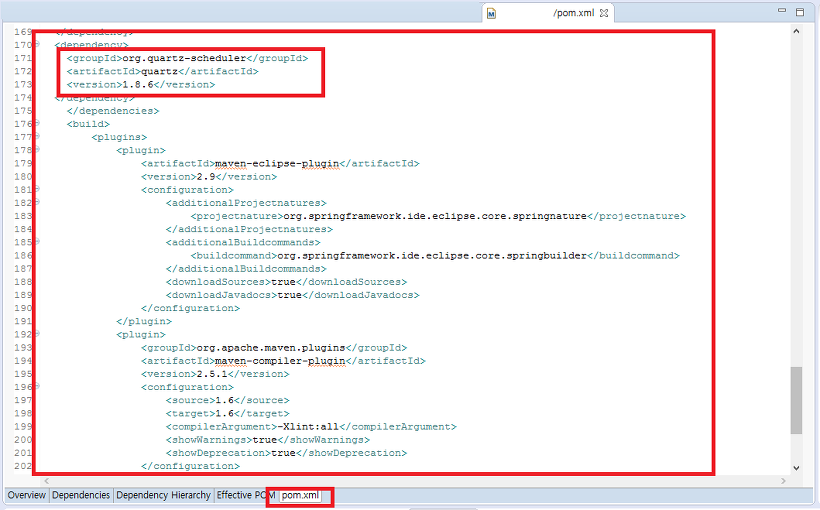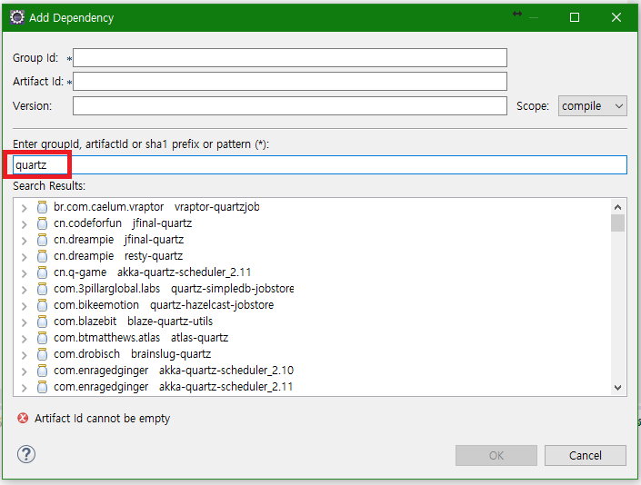 가장 먼저 사용하고자 하는 Dependency가 있어야겠지요. 이번 포스팅에서는 스프링 프레임 워크에서 많이 사용하는 쿼츠(quartz)를 Maven을 이용해서 추가하는 예시를 진행해보겠습니다.