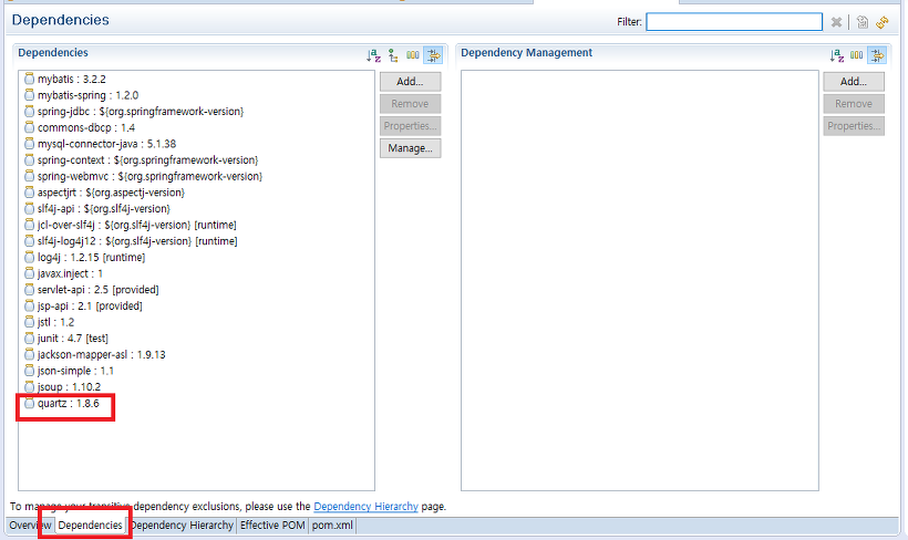 Maven Dependencies 폴더에 우리가 방금 추가한 quartz가 나타나야 합니다.