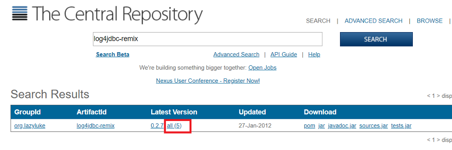 그럴때 해당 사이트에 들어가서 search 기능을 이용하면 편리하다. maven dependency 시 추가할경우 간혹 버전이 지원안하는경우가 생기기때문에 해당 페이지에서 확인가능하다.