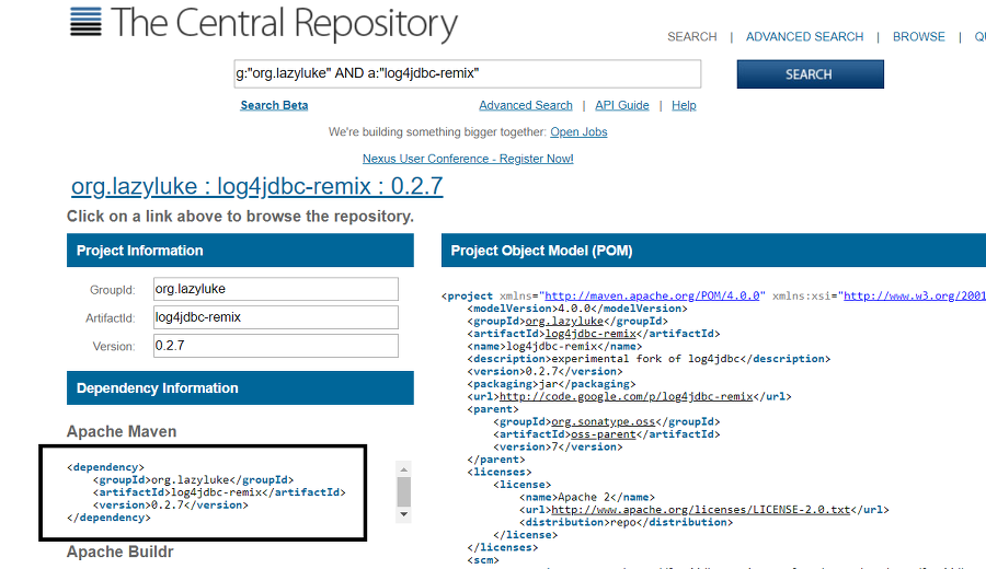 그럴때 해당 사이트에 들어가서 search 기능을 이용하면 편리하다. maven dependency 시 추가할경우 간혹 버전이 지원안하는경우가 생기기때문에 해당 페이지에서 확인가능하다.