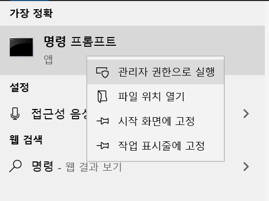 2.1 명령 프롬프트 열기(관리자 권한)