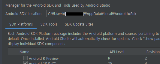 > SDK Manager에서 상단