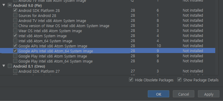 Google APIs Intel x86 Atom System Image