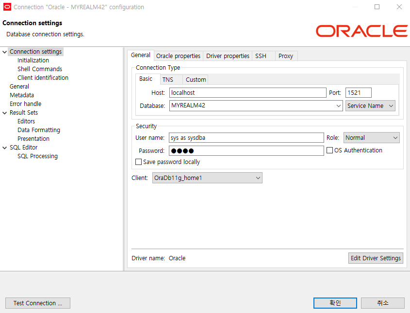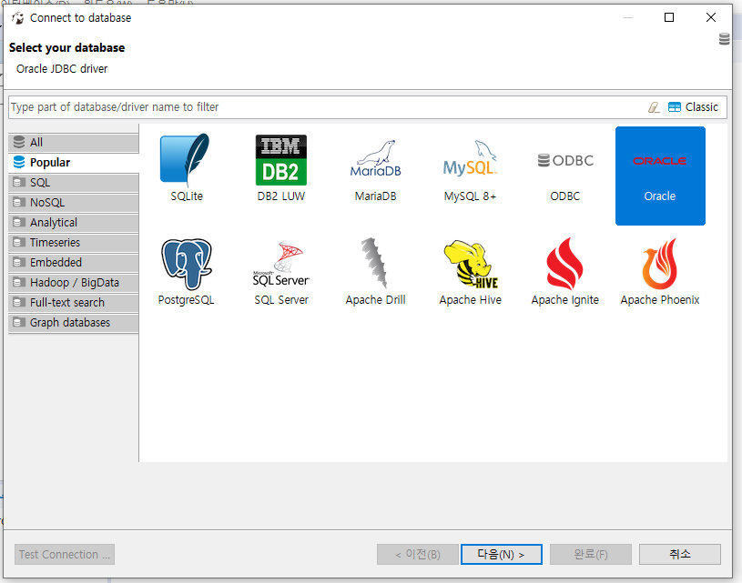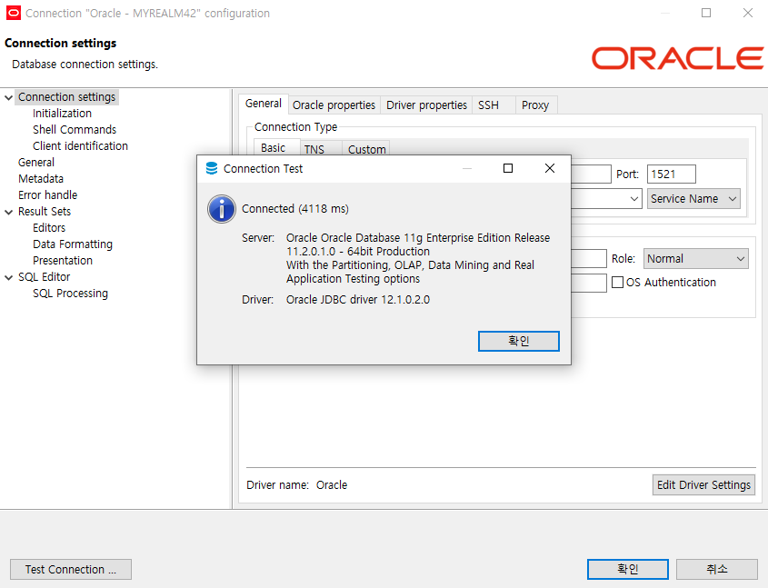 내 경우에는 Oracle로 연결을 해본다