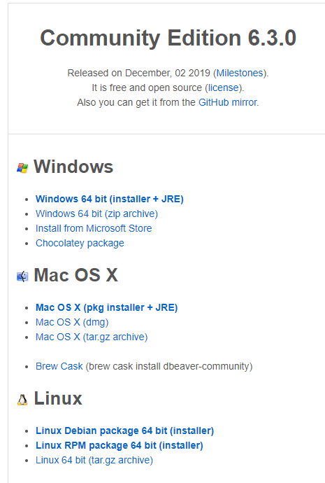 Download Tested and verified for MS Windows 7/8/10, Linux and Mac OS X. DBeaver requires Java 1.8 or higher. Windows and MacOS installers include OpenJDK 11 bundle. If you are on Mac OS X and you do NOT use PKG installer then you will need to setup Java. N