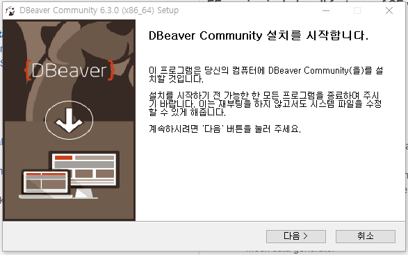 다 설치하고 나면 DBeaver Community Edition을 실행해 보자