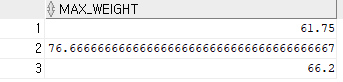 SELECT deptno, MAX(AVG(weight)) max_weight