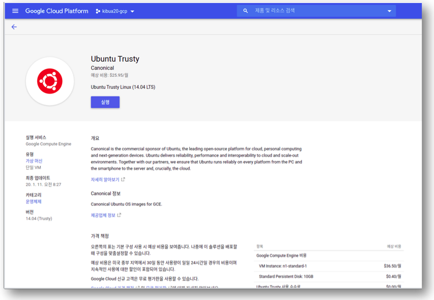 우분투 14.04 설치 (제품 및 리소스 검색을 통해서 설치 가능)