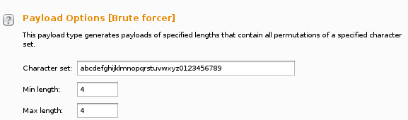 Payload Options를 보면 일일이 대입해 볼 문자들이 설정되어 있다.