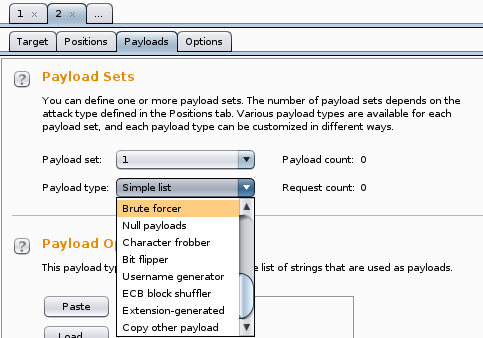다음으로 Payloads 탭을 보자. Payload Sets의 Payload type에서 Brute forcer을 선택한다.