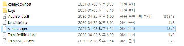 sitemanager.xml 이라는 파일이 있는데, 이게 접속정보를 담고있는 파일입니다.