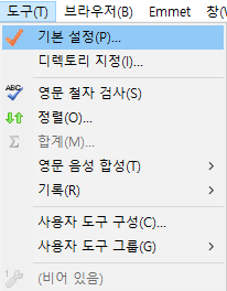 1. 상단 메뉴바에서 도구->기본설정을 클릭한다.