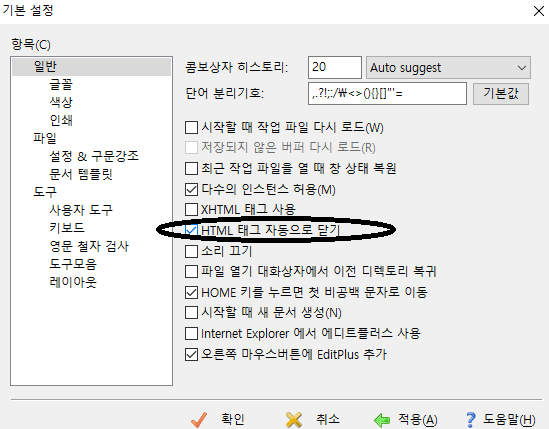 [개발/툴] 에디트플러스 태그 자동닫기 설정 방법