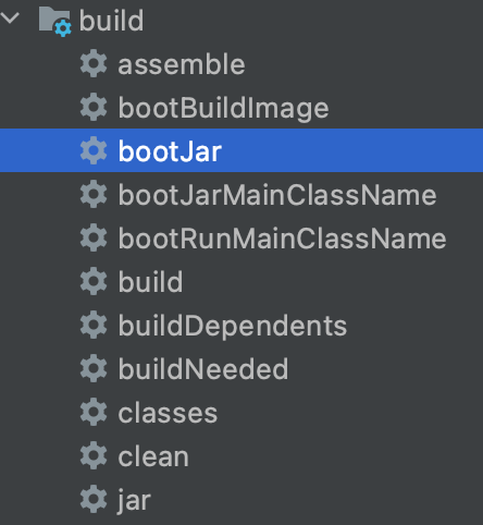 2. 인텔리j Gradle 탭이 열리면 아래 이미지에 나와있는 것처럼 bootJar 를 눌러서 파일을 생성합니다.