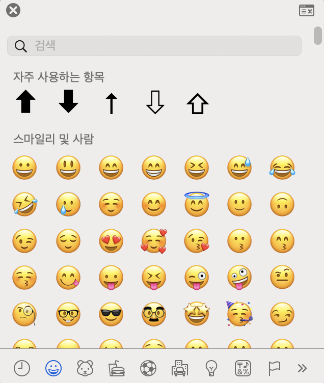 이모티콘 뿐만 아니라 전체 특수문자들을 볼수있는 창으로 전환됩니다!