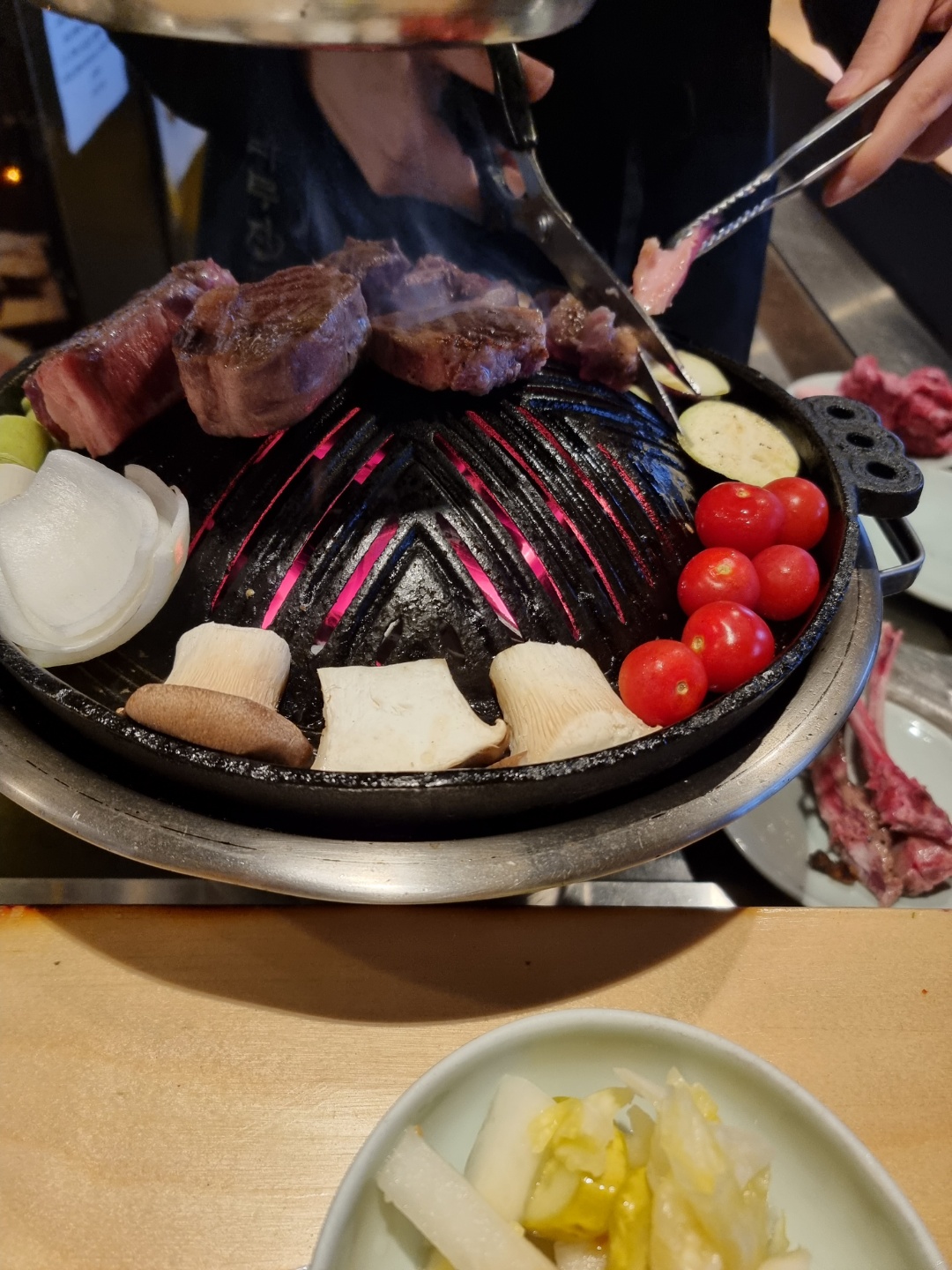 야채 / 버섯 등을 세팅하고 양고기를 구워주시더라구요!