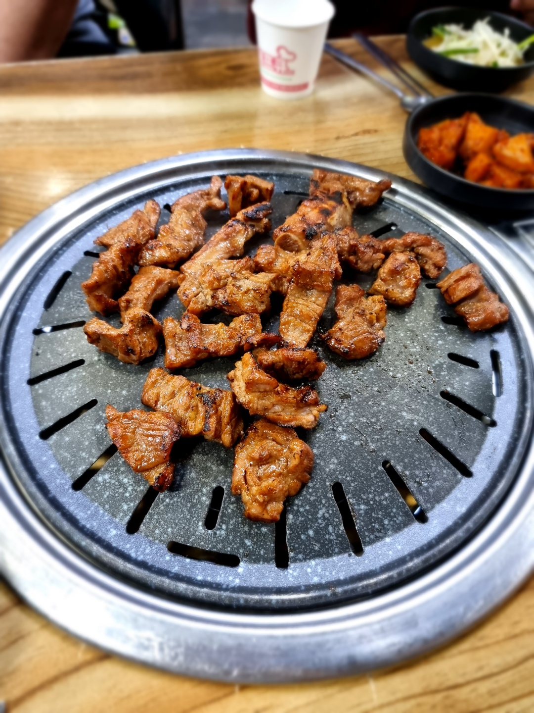 돼지고기가 식어가는거 같으면 아래 불판의 불을 약하게