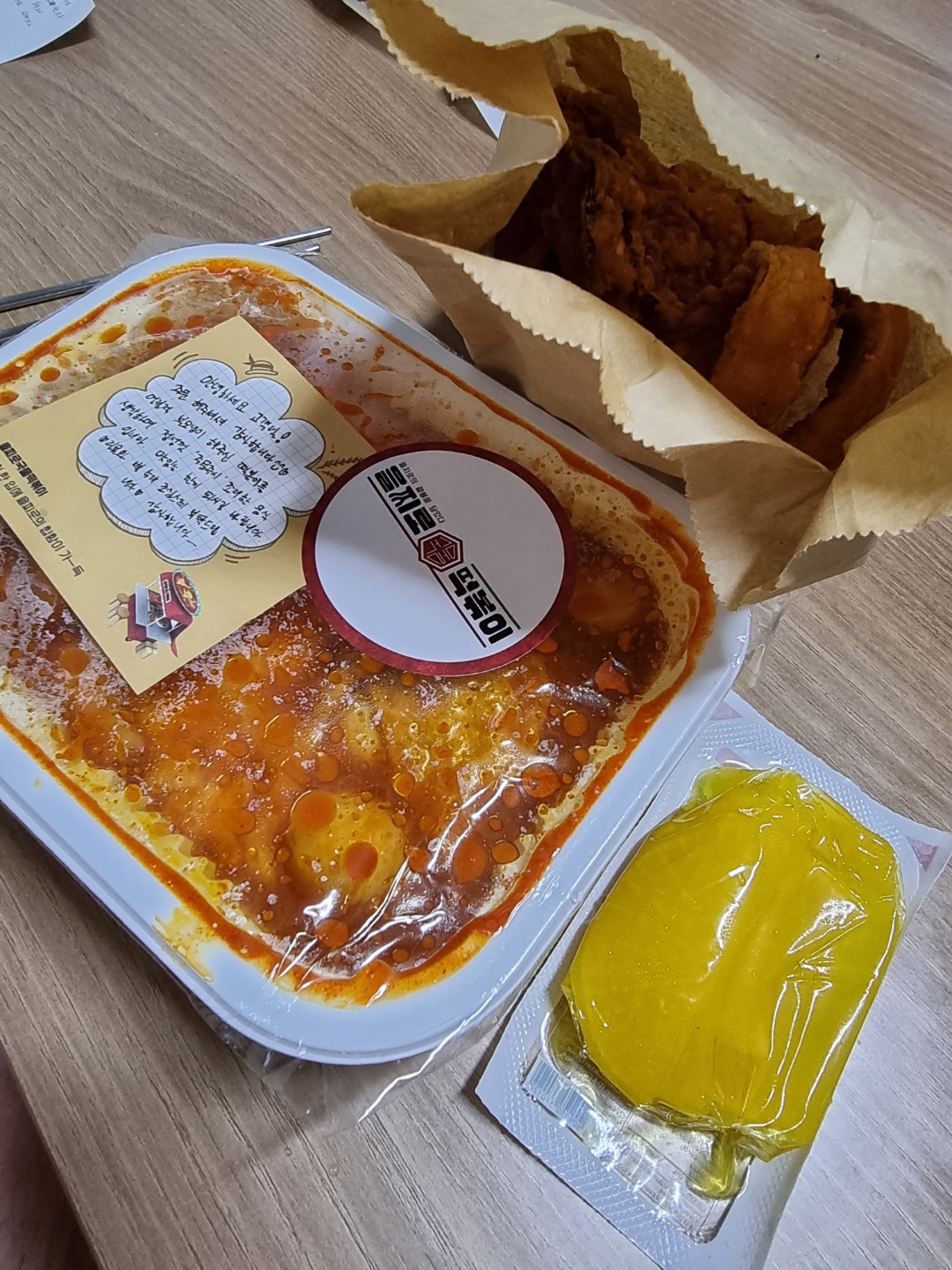 떡볶이는 매콤한 국물떡볶이 맛이고!
