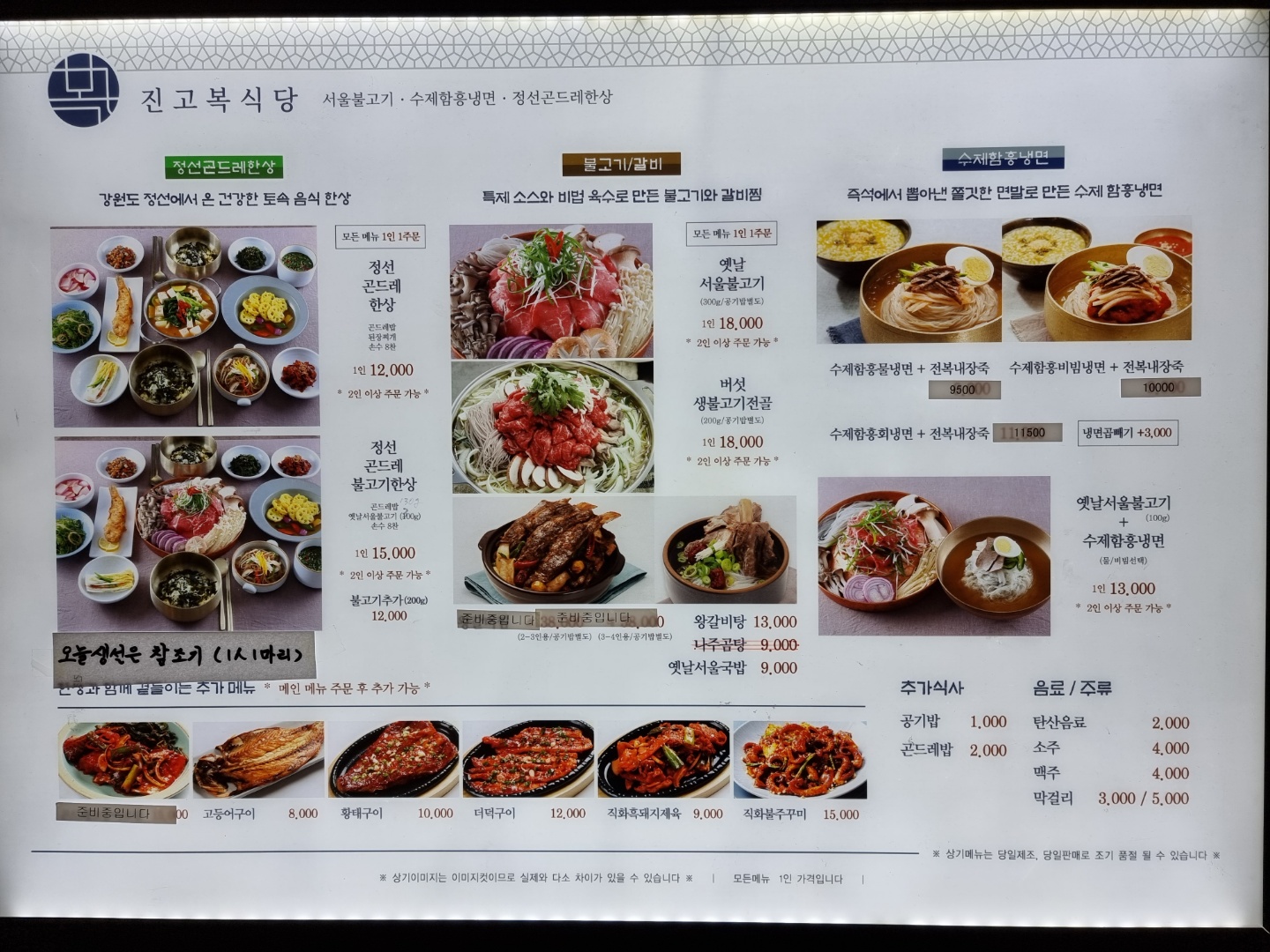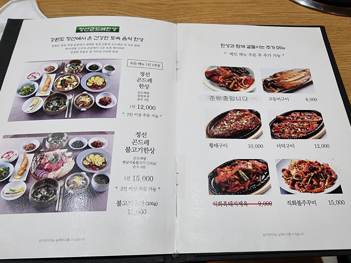 정성 곤드레 한상 2인분과 물냉면을 주문했습니다!