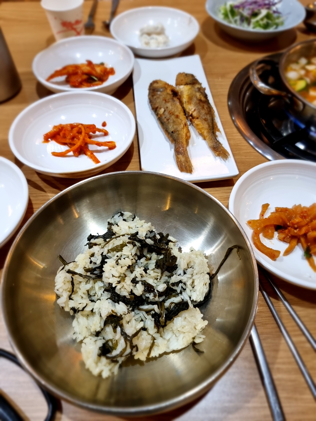 그리고 바로 밑반찬이 깔리고 식사가 준비되더라구요!!