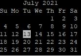 그냥 cal 이라는 명령어를 커맨드창에서 실행하면