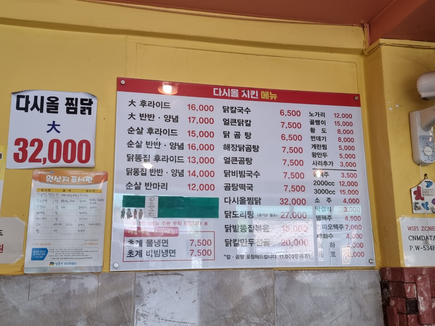 닭곰탕 / 얼큰닭칼 / 닭칼국수 / 순살 반반