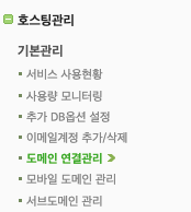 1. 호스팅센터에 로그인해서 호스팅 관리 메뉴로 이동합니다.