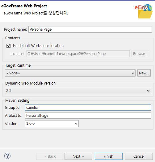 그다음 File - New - eGovFrame Web Project 를 클릭하면
