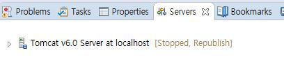 이클립스 하단에 Servers 탭을 클릭하시면 아래와 같은 문구가 나옵니다.