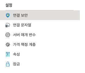 2. 아래 이미지와 같이 설정 -> 연결보안 메뉴를 클릭합니다.