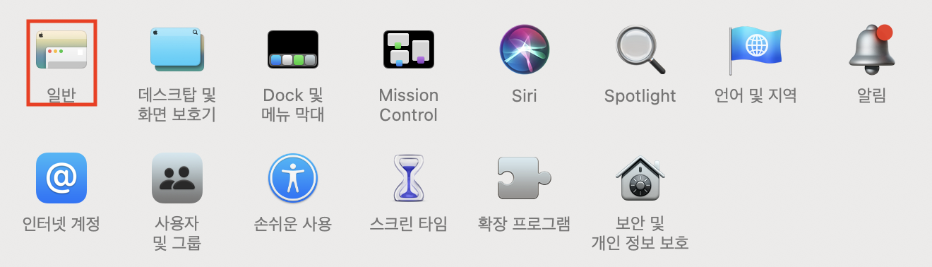 1. 시스템 환경설정 창을 열어서 아래와 같이 일반 메뉴를 클릭합니다!