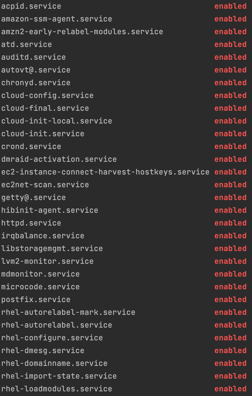 systemctl list-unit-files --type service | grep enabled