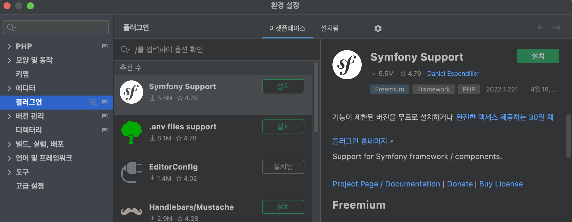 3. 플로그인 목록중 상단을 보시면 마켓플레이스와 설치됨 탭이 있는데 그중에