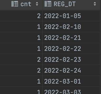 일자별 회원 가입수를 추출해야 하는 경우가 해당될듯 합니다!