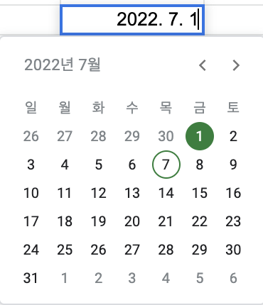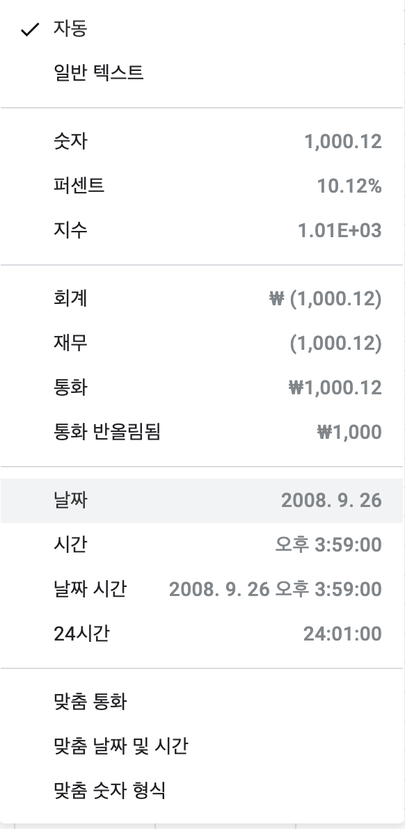 [컴퓨터/구글] 스프레드시트 셀에 날짜형식 설정하는 방법
