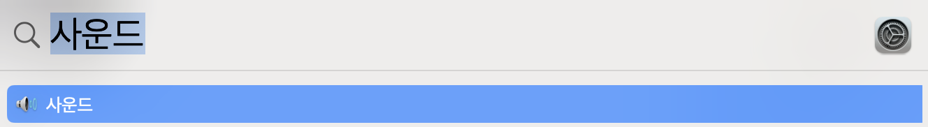 1. Command + space 로 검색창을 열어서 '사운드'를 검색합니다.
