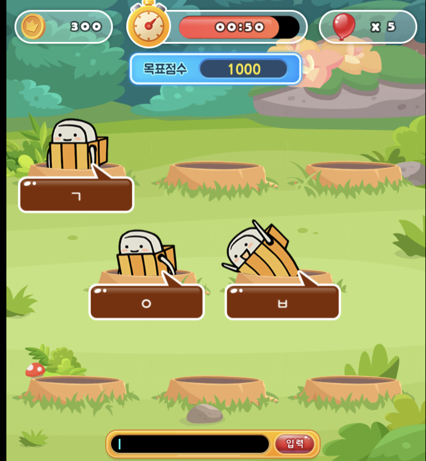 두더지 게임처럼 자리에 해당되는 글자들이 나오는걸 입력해서