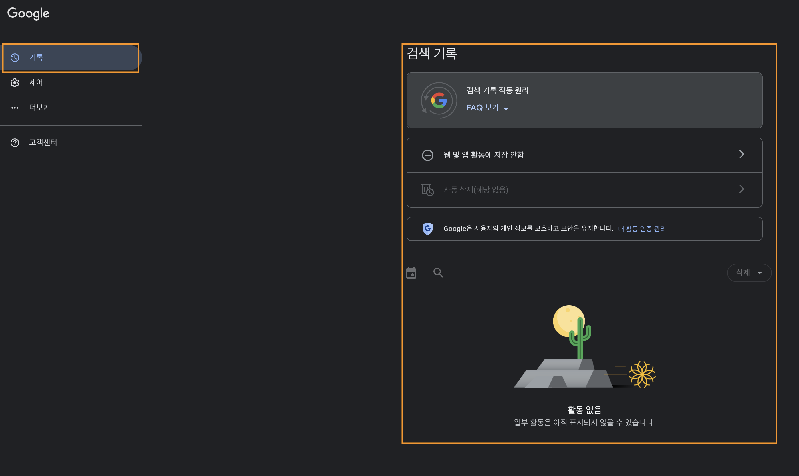 기록 탭을 클릭하면 그 오른쪽 영역에