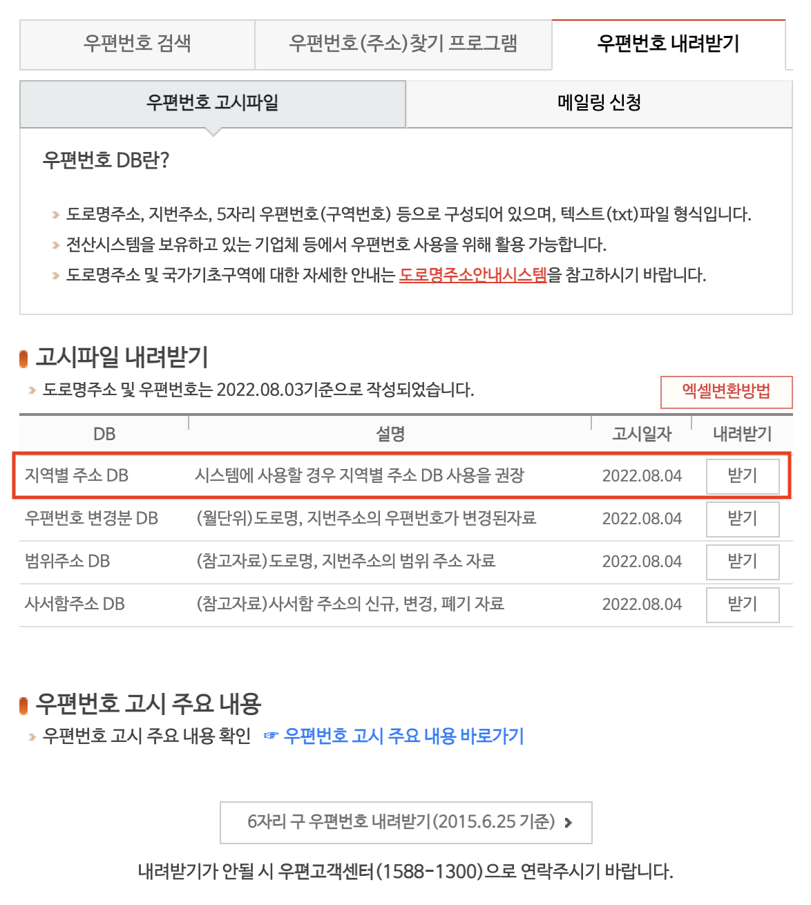 우체국 우편번호 DB 검색기 사이트 : https://www.epost.go.kr/search/zipcode/cmzcd002k01.jsp