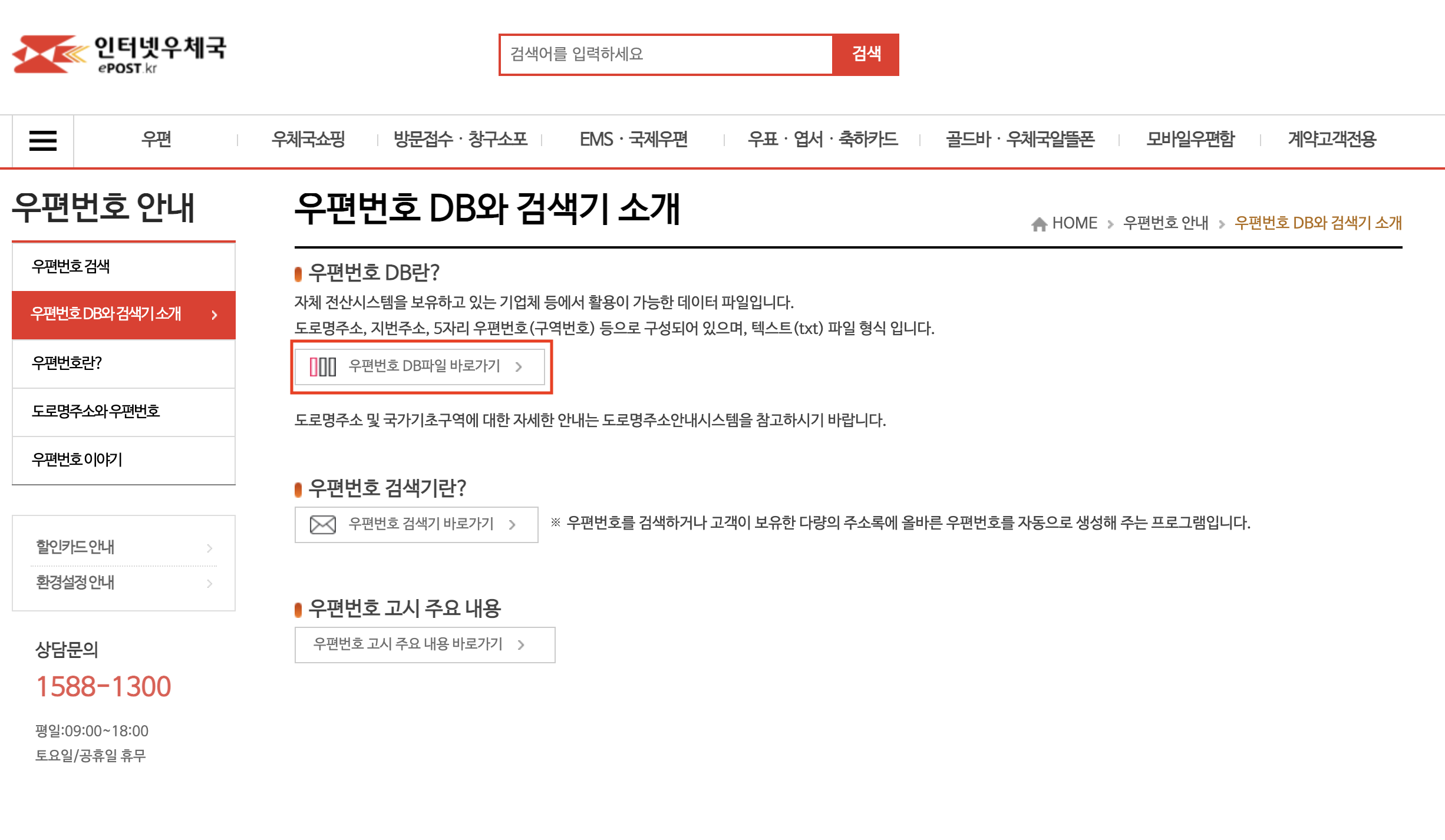 우편번호 DB와 검색기 소개 - 우편번호 안내