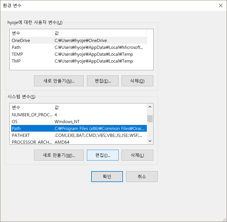 그래서 우리가 주로 개발환경을 설정해야할 때 변경하는 환경변수는 Path나 CLASSPATH정도가 되겠다.
