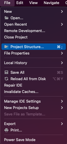2. 그리고 Structure 창이 열리면 창 왼쪽메뉴중 아래 이미지와 같이 Modules 를 클릭합니다.
