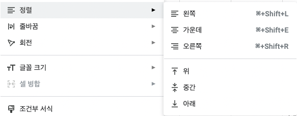 [컴퓨터/참고] 구글 스프레드시트 텍스트 정렬 방법