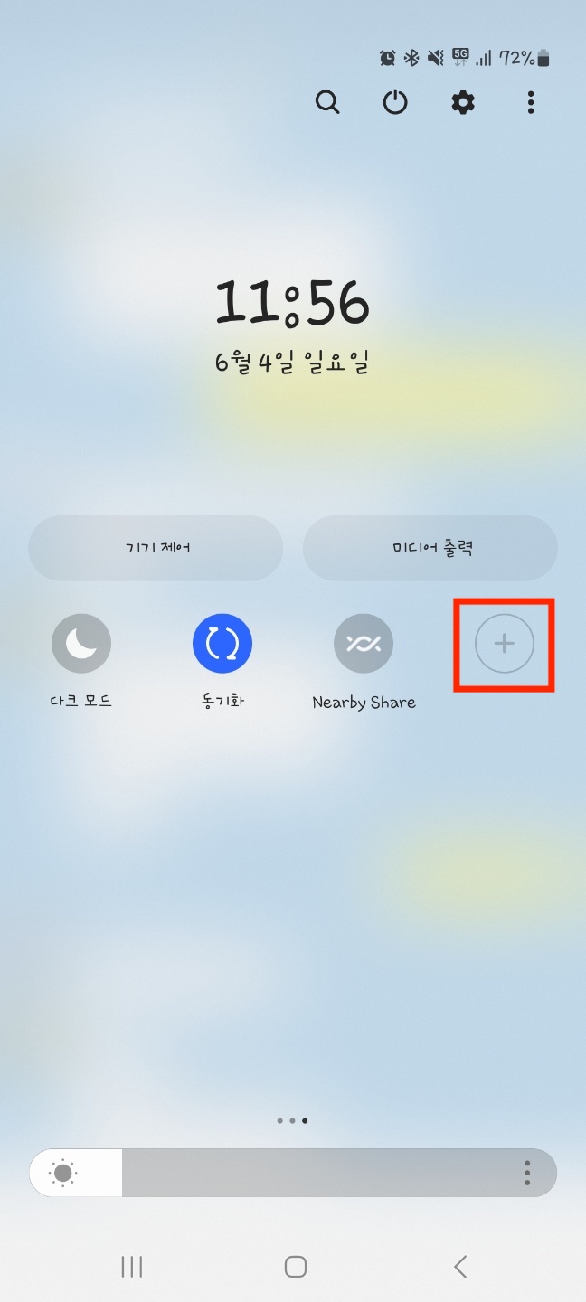 1. 휴대폰 상단의 도구바를 드래그하여 아래 이미지와 같이 아이콘 추가버튼을 누릅니다.