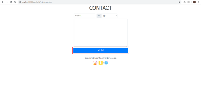 현재는 메일을 보내는 것만 구현이 되어있고 메일 보내기를 실패했을 때 처리는 되지 않은 상태이다. 즉 클라이언트단에서 예외처리가 없는 상태. 따라서 실패하면 콘솔창에 에러 내역만 뜨고 팝업창에 COMPLETE 메시지는 무조건 뜨게 되어있다. 이 부분은 각자 만들어보는 것도 좋을 것 같다 :)