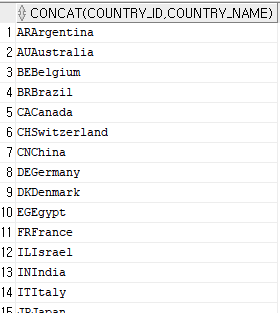 SELECT COUNTRY_ID||COUNTRY_NAME FROM COUNTRIES;