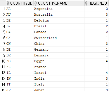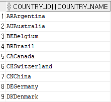 SELECT * FROM COUNTRIES;