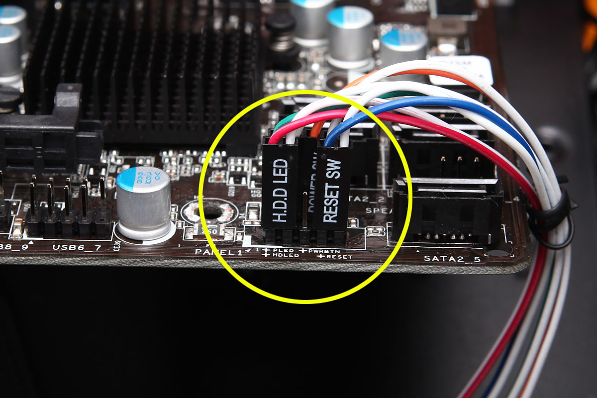 보통 케이블 끝단이나 메인보드 패널 표면에는 해당 기능들의 명칭이 프린트되어 있어서, 각 명칭에 해당하는 선들을