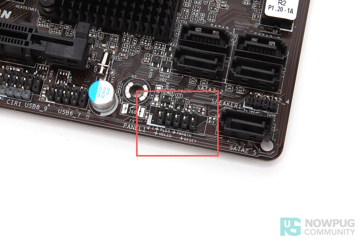 여기에 케이스에서 제공되는 파워 LED (PLED), 파워버튼 (PWRBTN), 하드디스크 LED (HDLED), 리셋 (RESET)