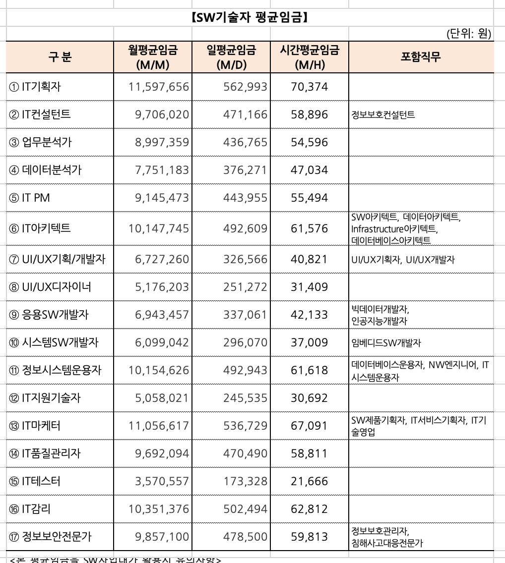 [단가] 2025 소프트웨어 노임단가표